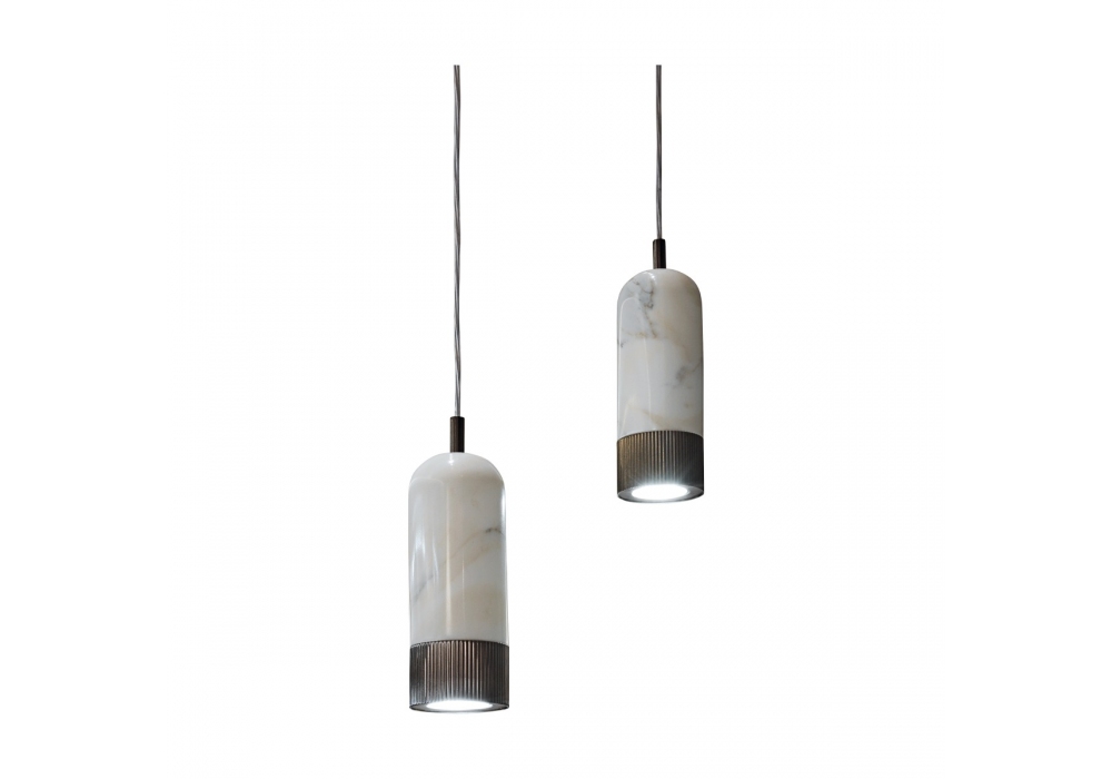 Maddy firmato da Alessandro La Spada per Visionnaire è una lampada a sospensione con rosone in acciaio inox e corpo lampada in marmo e metallo. Maddy è disponibile in differenti finiture.