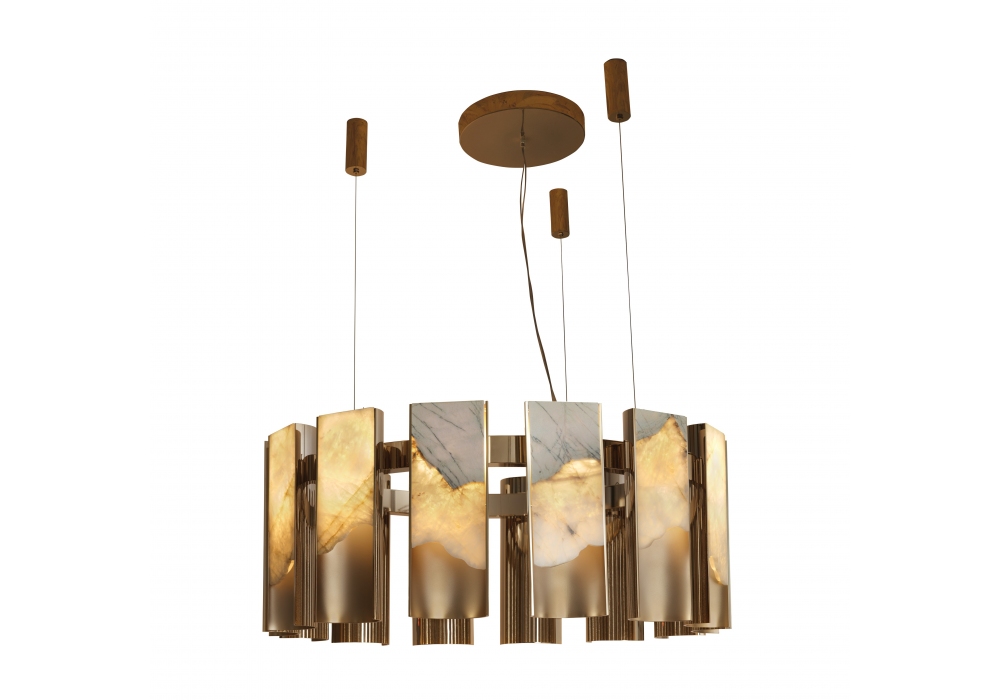 Polaris firmato da Alessandro La Spada per Visionnaire è un lampadario circolare composto da molteplici elementi ricurvi in alluminio lucido all'esterno e satinato nella parte interna. I diffusori sono in venato retroilluminato ed il sistema luminoso adottata è di tipo LED COB. Il telaio interno è strutturato da anelli in metallo sostenitu da cavi in acciaio. Polaris è disponibile in differenti modelli e finiture.