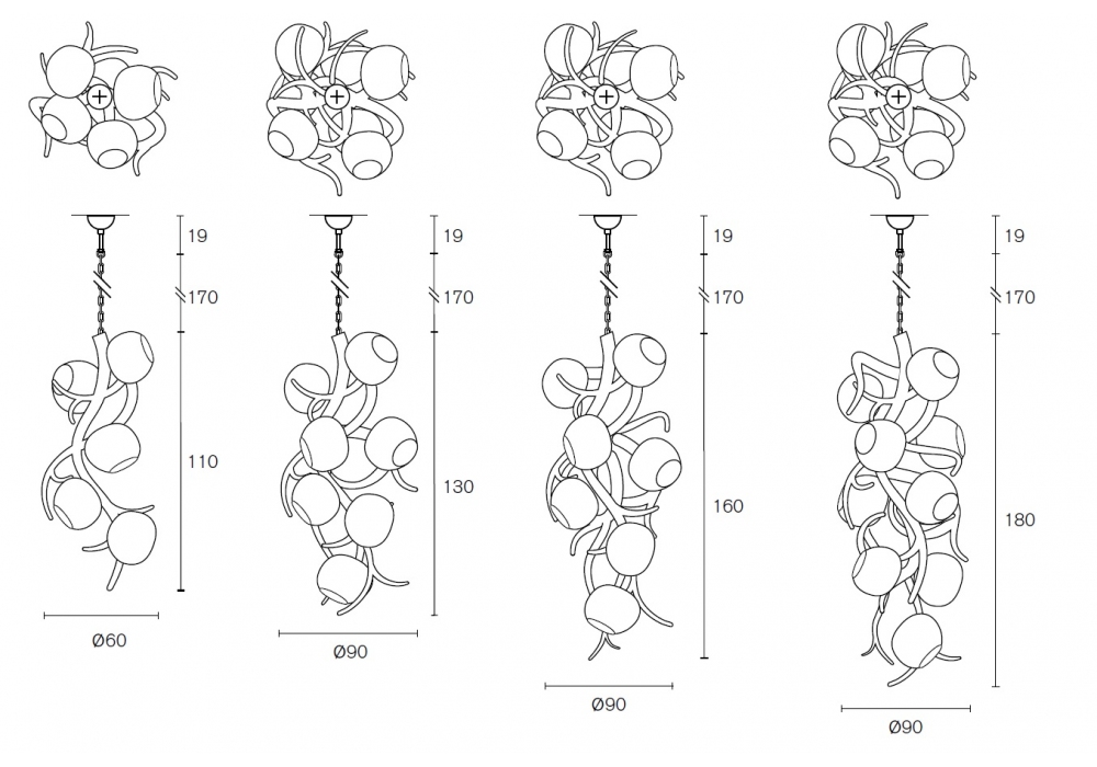 | Dimensioni | Ø 60 x H 110 cm; Ø 90 x H 130 cm; Ø 90 x H 160 cm; Ø 90 x H 180 cm. |