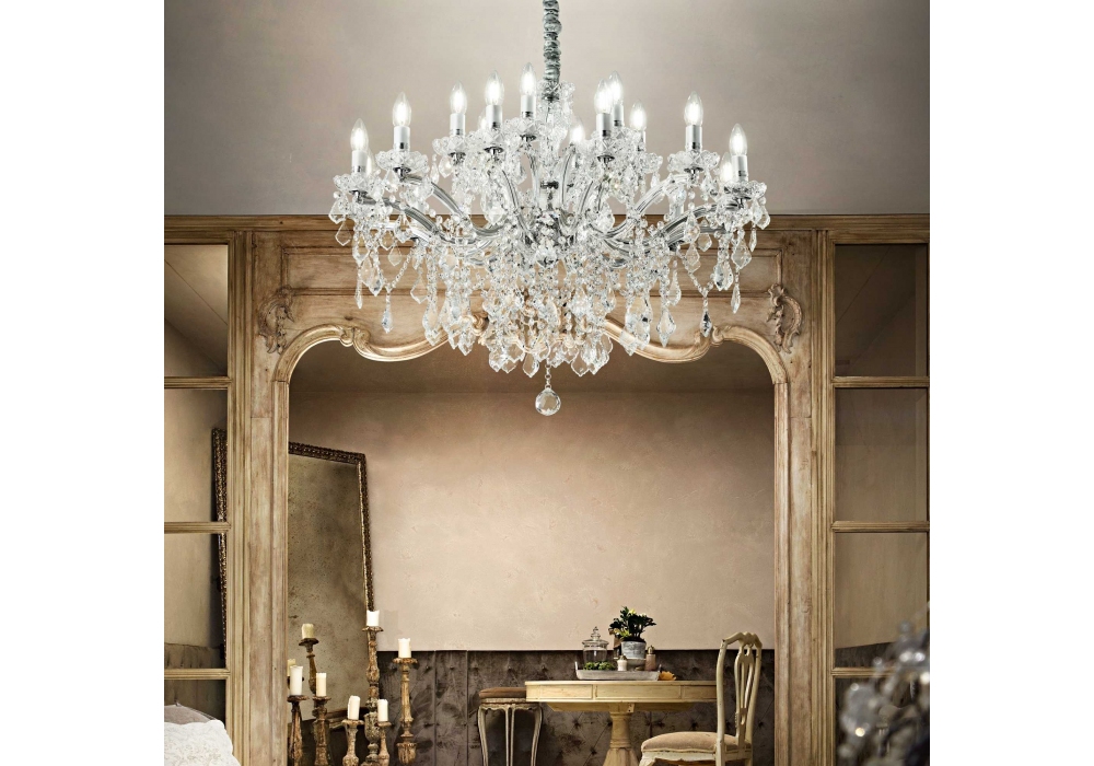Florian firmata e prodotta da Ideal Lux è una lampadario con struttura portante in metallo. I pendenti sono ottagoni e gocce finali in cristallo molato. Le sorgenti luminose adottate sono di tipo LED. Florian è disponibile in differenti finiture e modelli.