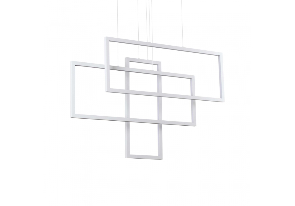 Frame firmata e prodotta da Ideal Lux è una lampada a sospensione con struttura portante di forma quadrangolare e struttura portante in metallo verniciato in tonalità opache. I pendenti sono in alluminio con diverse forme geometriche con diffusori in materiale plastico e schermano delle sorgenti luminose di tipo LED. Frame è disponibile in differenti finiture e modelli.