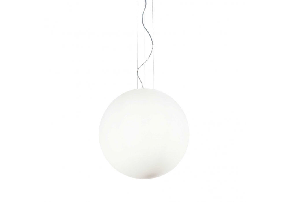 Mapa firmata e prodotta da Ideal Lux è una lampada a sospensione con struttura portante in metallo verniciato bianco e cavi di sospensione in acciaio. Il diffusore è sferico in vetro soffiato bianco acidato e scherma una sorgente luminosa di tipo LED. Mapa è disponibile in differenti modelli.