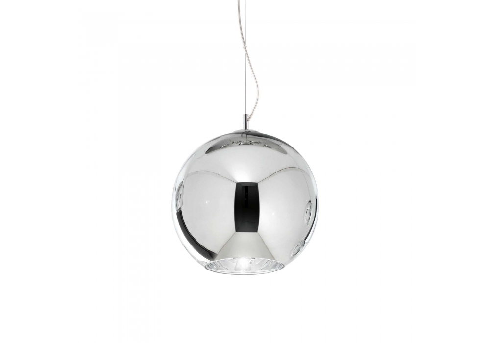 Nemo D30 firmata e prodotta da Ideal Lux è una lampada a sospensione con struttura portante in metallo placato e cavi di sospensione in acciaio. Il diffusore è sferico in vetro soffiato e scherma una sorgente luminosa di tipo LED. Nemo D30 è disponibile in differenti finiture.
