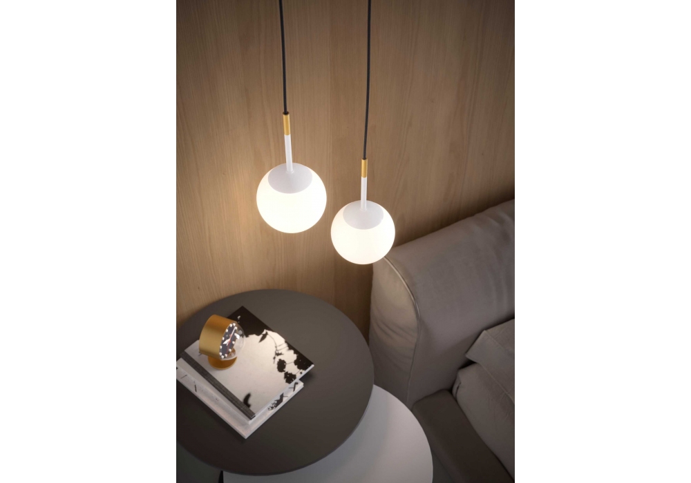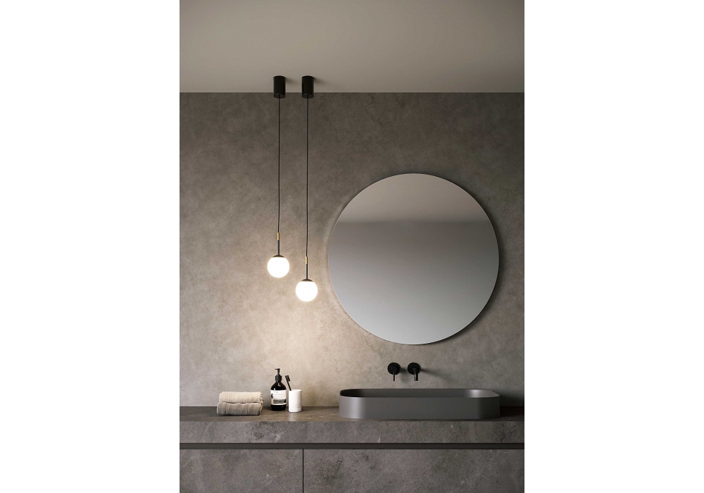 La Pallina SP firmata da Beppe Tizian per Olev è una lampada a sospensione realizzata in alluminio e vetro soffiato a bocca. Disponibile in diverse finiture e versioni. Cavo nero.