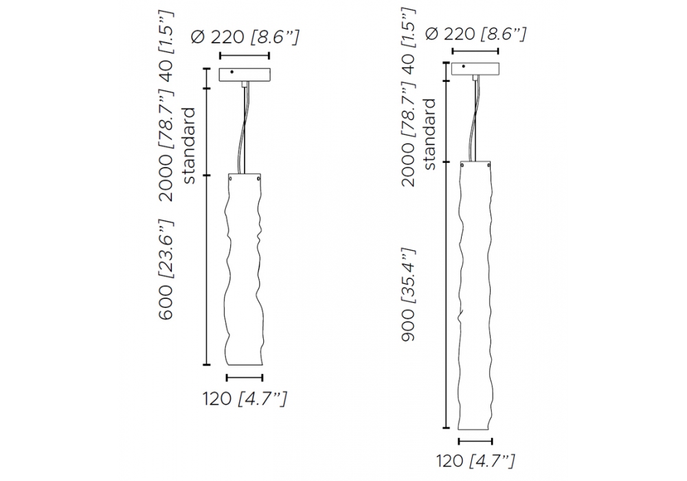 | Dimensioni | 12 x H 60 cm; 12 x H 90 cm. |