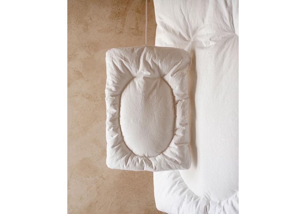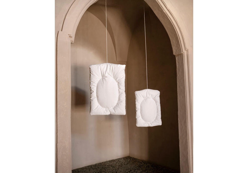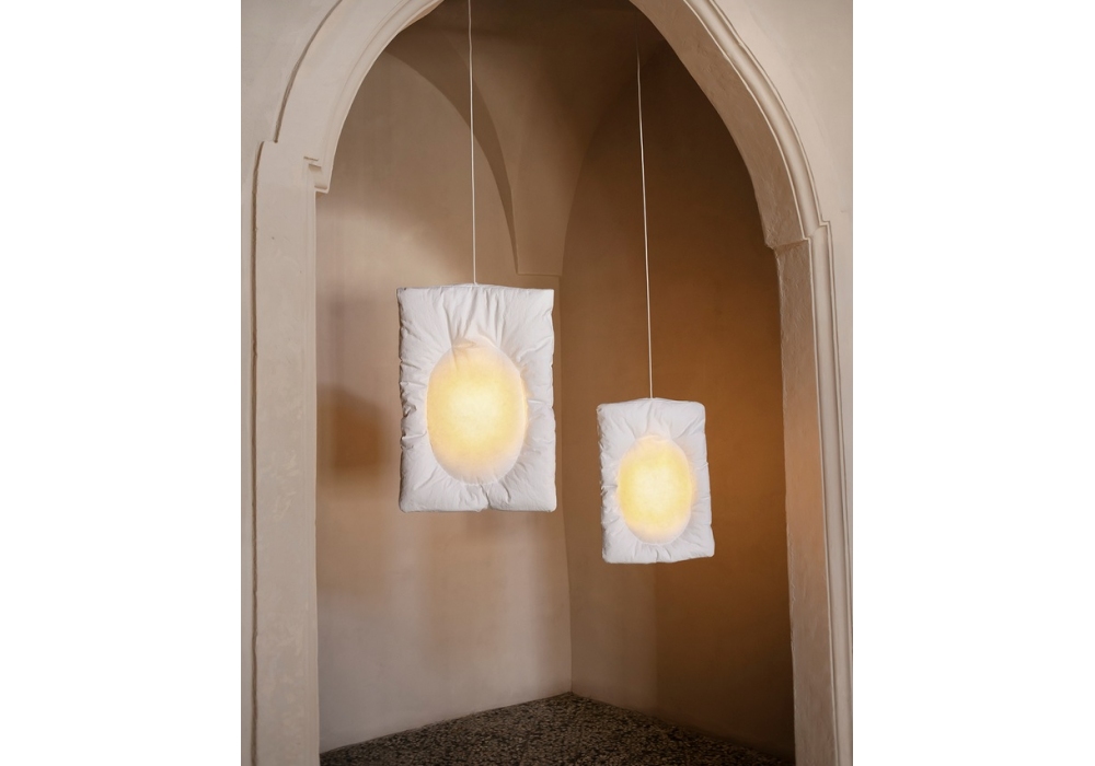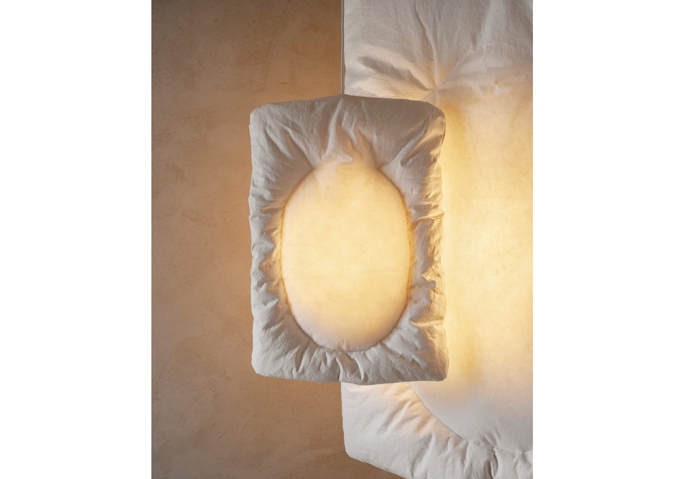Lunar firmata da Faye Toogood per Tacchini è una lampada a sospensione realizzata in fibre naturali e carta. Le luci Lunar sono caratterizzate da coperture trapuntate e sgualcite, che diffondono una luce morbida e soffusa grazie all'imbottitura interna attorno alla lampadina. Disponibile in diverse dimensioni.