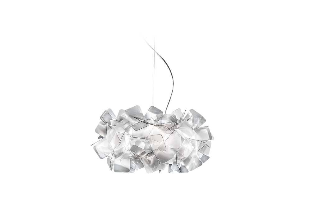 Clizia firmata da Adriano Rachele per Slamp è una lampada a sospensione dalla forma astratta realizzata in Lentiflex®, Cristalflex ® o Opalfex®. La sorgente luminosa adottata è di tipo LED a filamento dimmerabile. Clizia è disponibile in due differenti dimensioni e finiture.