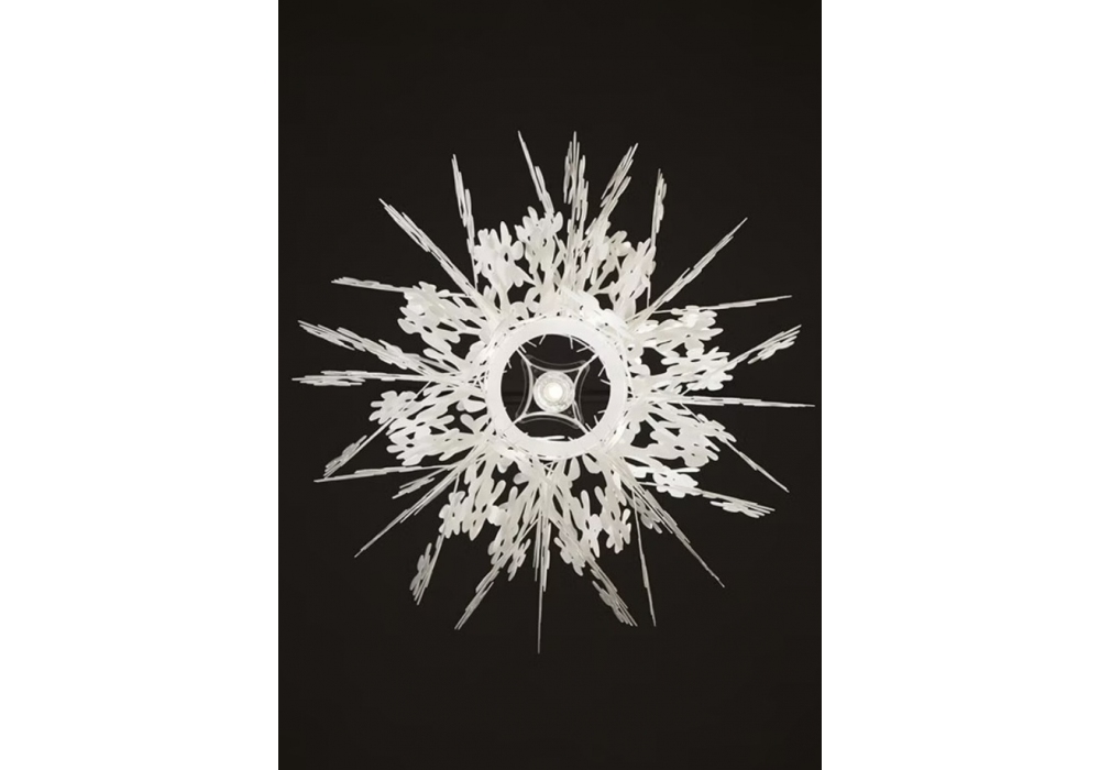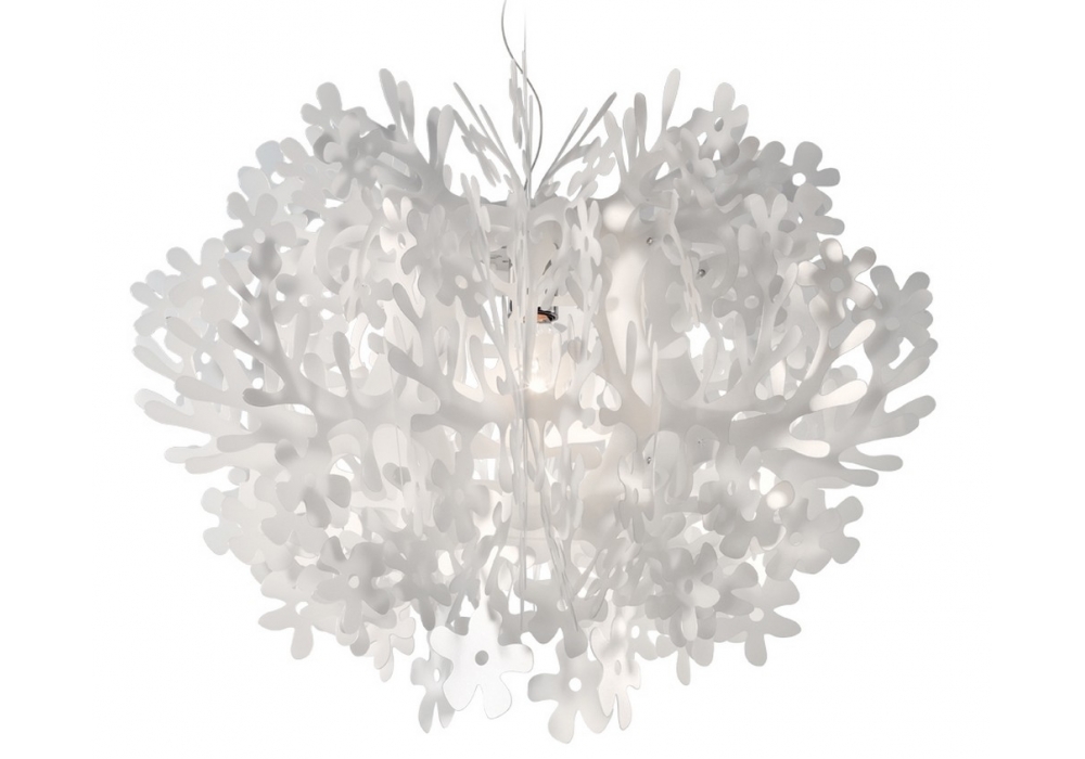 Fiorella Mini firmata da Nigel Coates per Slamp è una lampada a sospensione interamente strutturata in Opalflex® di colore bianco. Il diffusore è composto da vari elementi che si diramano verso l'esterno e schermano una sorgente luminosa di tipo LED a filamento dimmerabile.