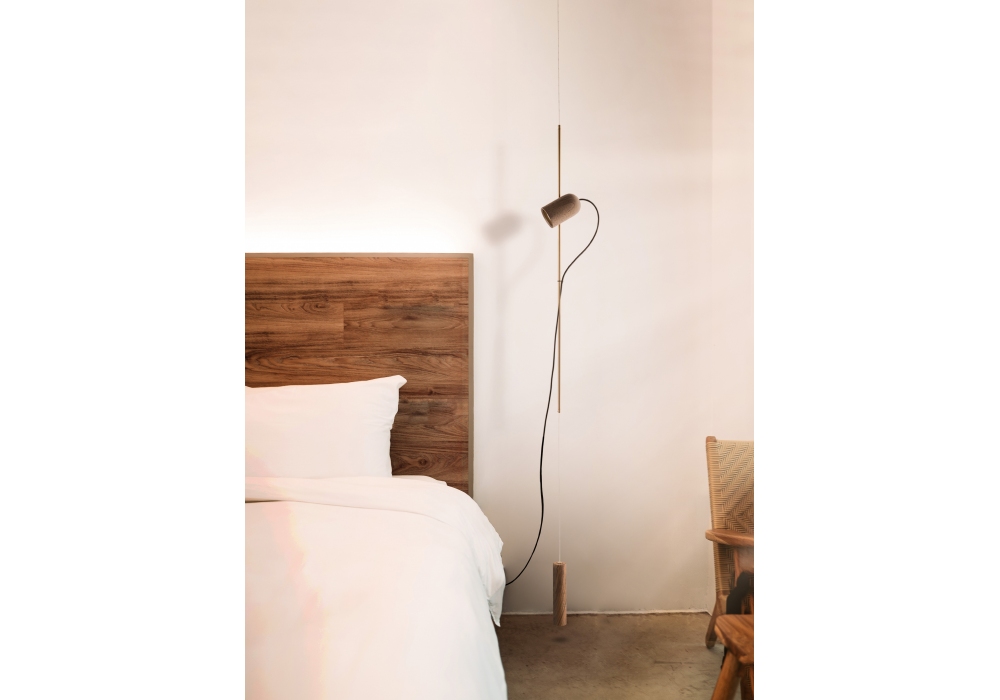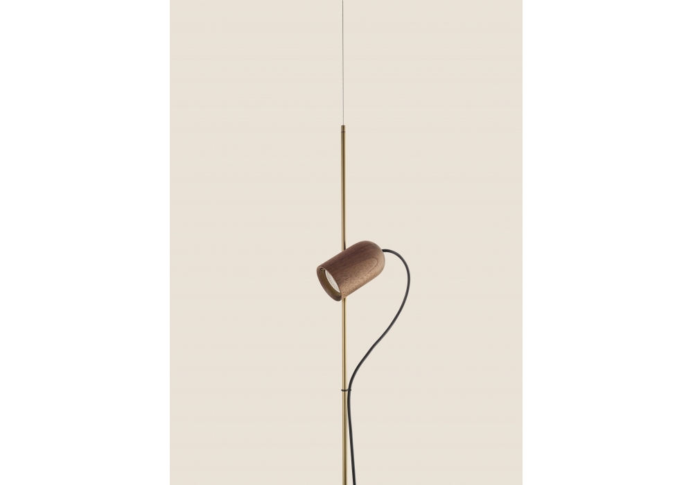 Onfa firmata da Goula/Figuera Studio per Nomon è una lampada a sospensione con struttura verticale in metallo tubolare con sistema di scorrimento su un cavo d'acciaio. Il diffusore è orientabile di forma cilindrica in legno con particolari in metallo ed adotta una sorgente luminosa di tipo LED con inensto GU10 dimmerabile. Onfa è disponibile in differenti finiture.