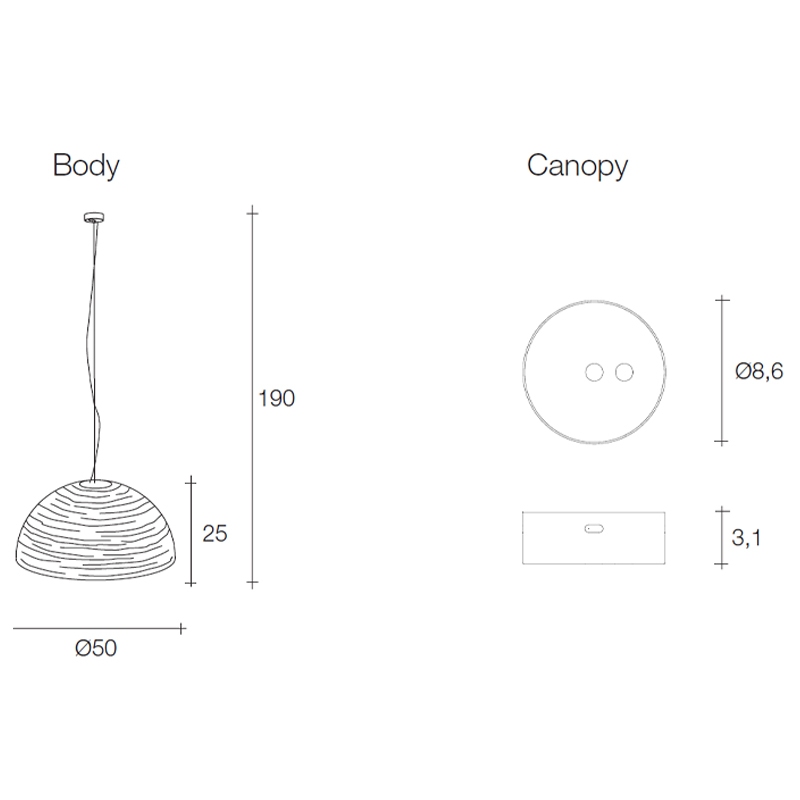 | Rosone | Ø 8,6 x H 3,1 cm; Ø 8,6 x H 3,1 cm. |