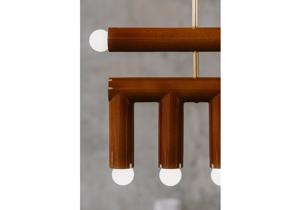 TRN D2 firmata da Pani Jurek è una lampada a sospensione realizzata con struttura in metallo e diffusore in ceramica smaltata a mano.
