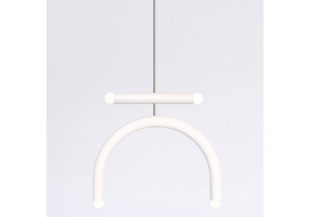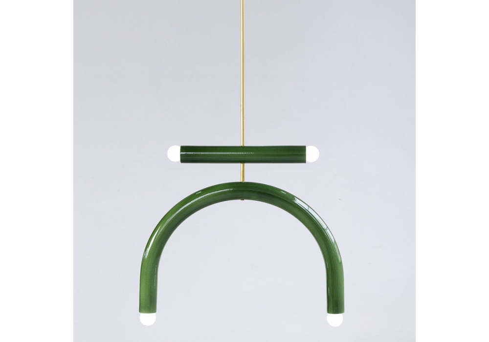 TRN E1 firmata da Pani Jurek è una lampada a sospensione realizzata con struttura in metallo e diffusore in ceramica smaltata a mano.