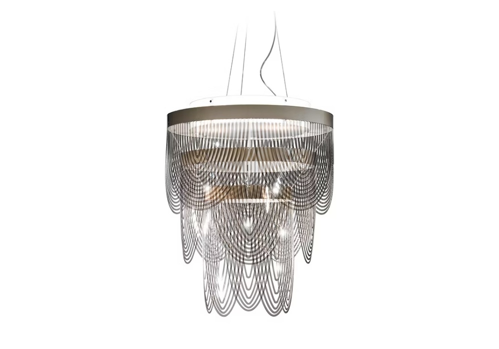Ceremony firmata da Bruno Rainaldi per Slamp è una lampada a sospensione interamente strutturata in Lentiflex®. Le sorgenti luminose adottate sono di tipo LED a filamento dimmerabili. Ceremony è disponibile in differenti dimensioni.