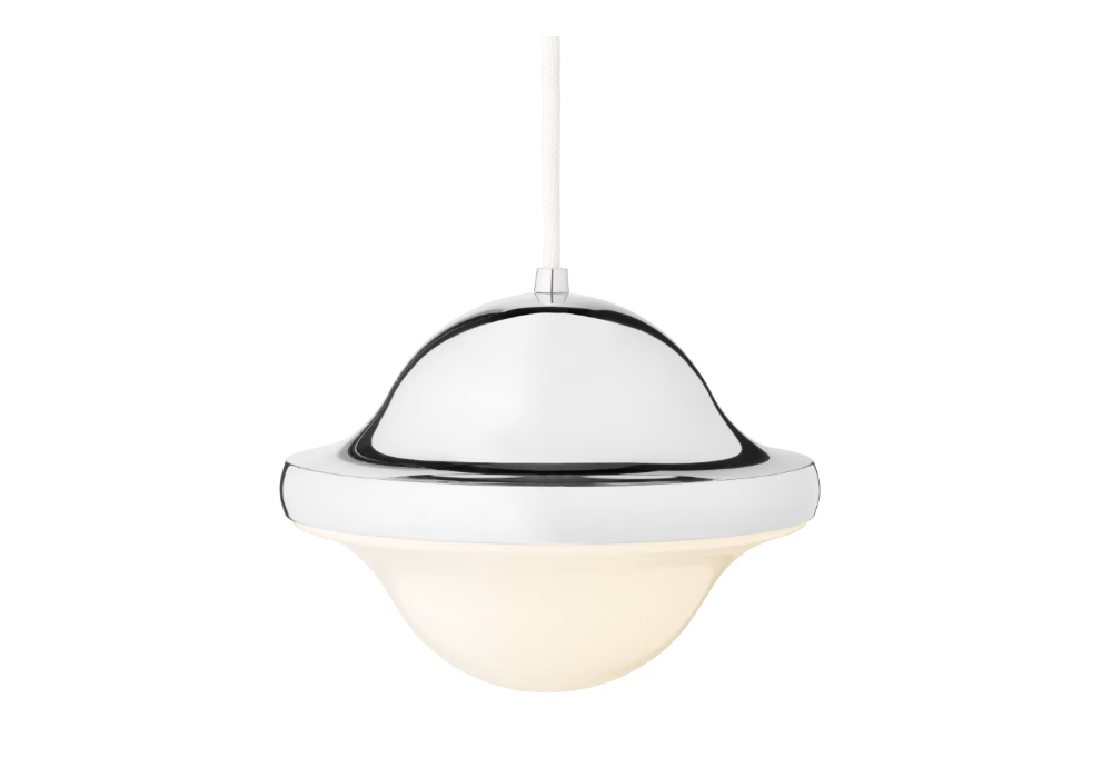 HK20 Bubi Pendant firmata da Henning Koppel per Carl Hansen & Søn è una lampada a sospensione con paralume in acrilico opalino e diffusore in acciaio cromato o ottonato.