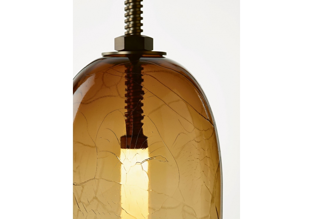 Under Pressure firmata da Boris Klimek, Lenka Damova per Brokis è una lampada a sospensione realizzata in vetro soffiato disponibile in differenti finiture. Il corpo e il rosone sono realizzati in metallo laccato spazzolato.