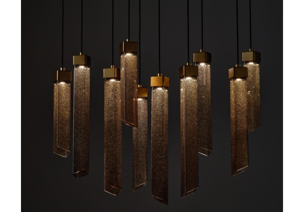 Comet firmata da Simona Sbordone per Brokis è una lampada a sospensione realizzata in vetro laminato soffiato a mano, con granelli di sabbia silicea aggiunti tra gli strati. Corpo lampada e rosone in metallo. La lampada adotta una sorgente di tipo LED dimmerabile.