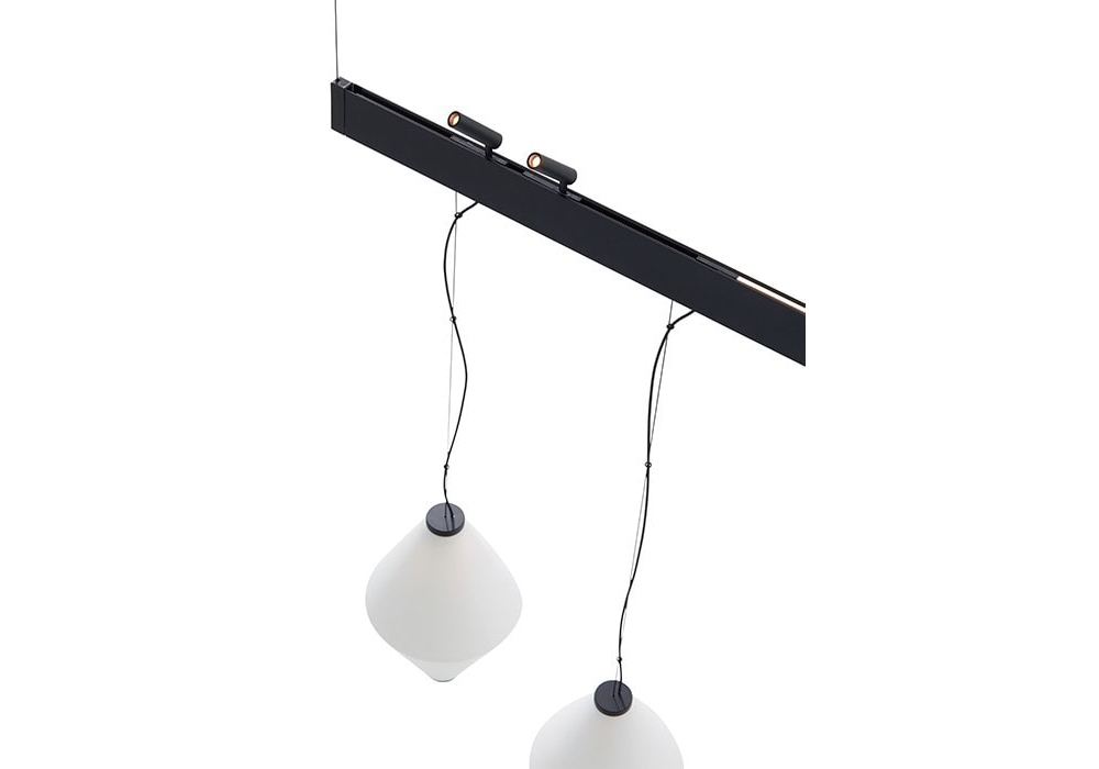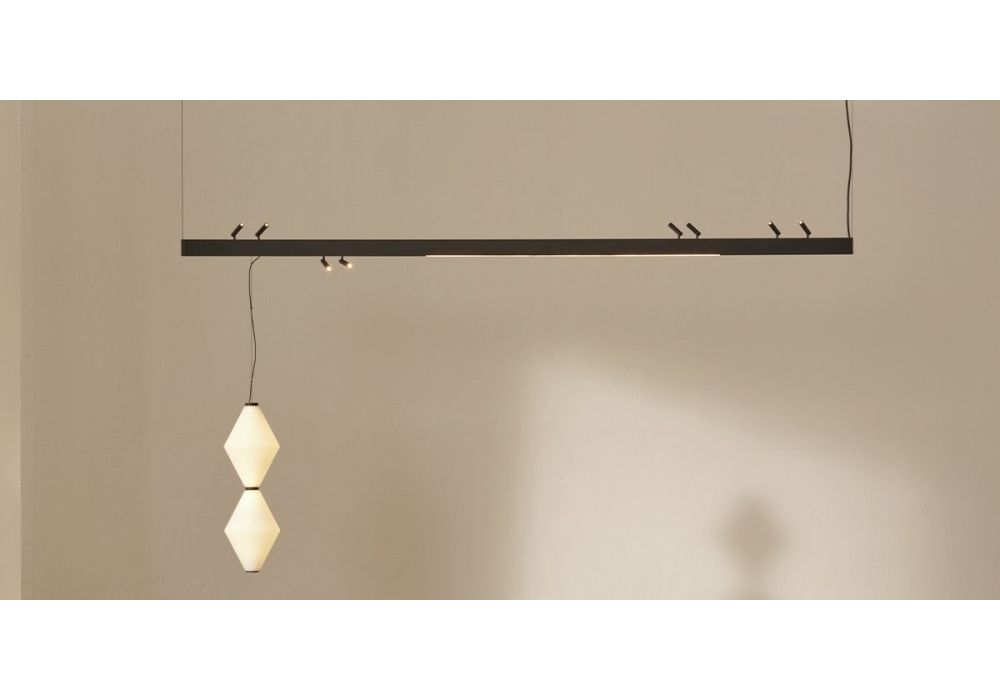 Linear Light System firmato da C.R.S. De Padova è un sistema di illuminazione a binario elettrificato biemissione, configurabile con lampade lineari, faretti orientabili e sospensioni decorative. Realizzato in alluminio verniciato nero opaco “soft touch”, con rosone coordinato e alimentatore integrato (output 24V). Controllo e dimmerazione tramite PUSH o DALI. Le fonti luminose sui profili superiore e inferiore sono gestibili in modo indipendente, offrendo massima flessibilità progettuale.