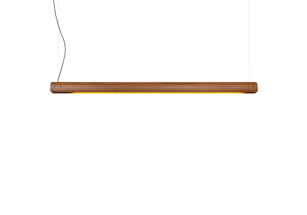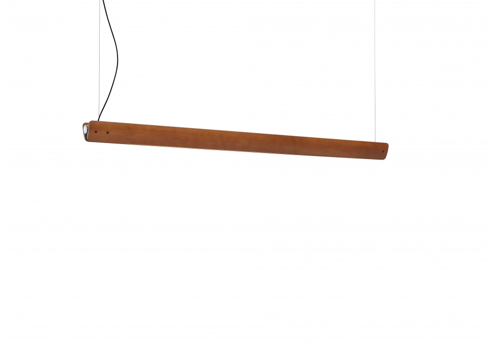 Seki-Han firmata da Tobia Scarpa per Flos è una lampada a sospensione realizzata con struttura in legno di frassino termotrattato e lavorato CNC, terminali e rosone in alluminio lucidato e zapponato. Dimmerabile TRIAC.