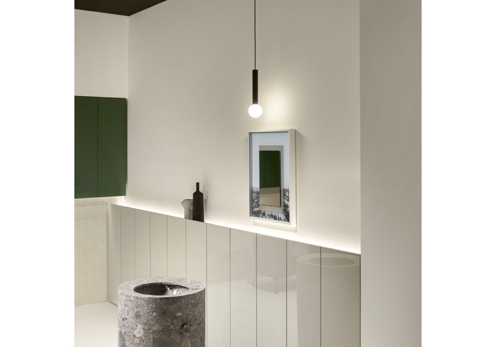 Apollo firmata da Antonio Lupi è una lampada a sospensione con illuminazione a LED realizzata con struttura in ottone verniciato goffrato o bianco opaco.