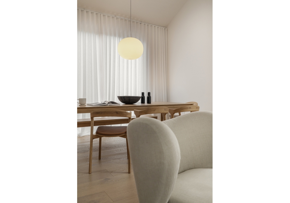 Glo-Ball S2 firmata da Jasper Morrison per Flos è una lampada a sospensione a luce diffusa. Diffusore in vetro opalino incamiciato, soffiato a bocca, con finitura esterna acidata. Supporto diffusore in policarbonato trasparente stampato ad iniezione. Rosone in poliammide caricata con il 30% di fibra di vetro stampato ad iniezione ed attacco a plafone di acciaio stampato e zincato. Cavo di sospensione di acciaio. Regolabile da remoto (dimmer non incluso). Lampadina esclusa.
