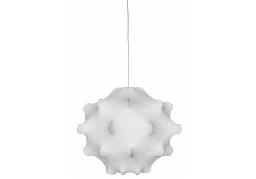 Taraxacum 1 firmata da Achille & Pier Giacomo Castiglioni per Flos è una lampada a sospensione a luce diffusa. Struttura interna in acciaio verniciato a polvere bianco. Diffusore in resina "cocoon" spruzzata sulla struttura, con protezione trasparente, realizzata a spruzzo alla fine della lavorazione. Regolabile da remoto (dimmer non incluso). Lampadna esclusa.
