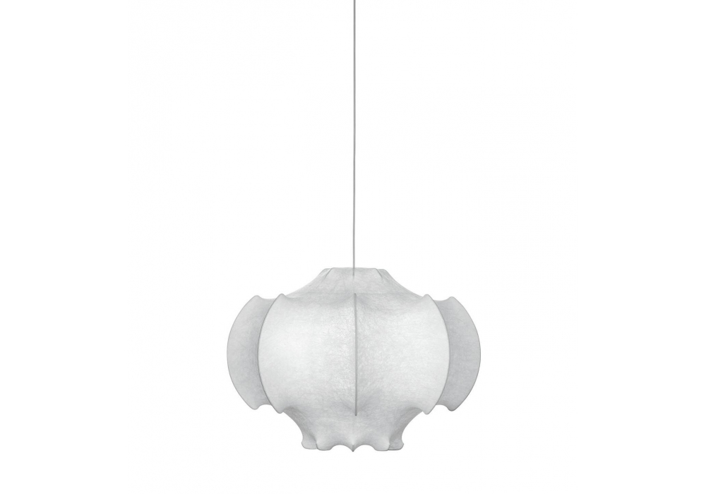 Viscontea firmata da Achille & Pier Giacomo Castiglioni per Flos è una lampada a sospensione a luce diffusa. Struttura interna in acciaio verniciato a polvere bianco. Diffusore in resina "cocoon" spruzzata sulla struttura, con protezione trasparente, realizzata a spruzzo alla fine della lavorazione. Regolabile da remoto (dimmer non incluso). Lampadna esclusa.