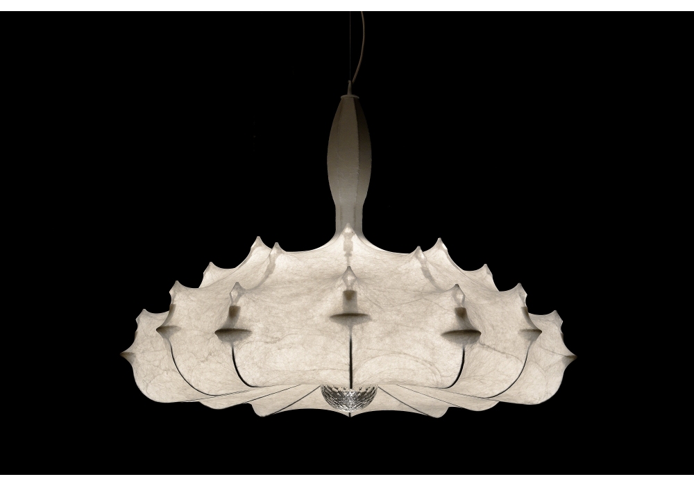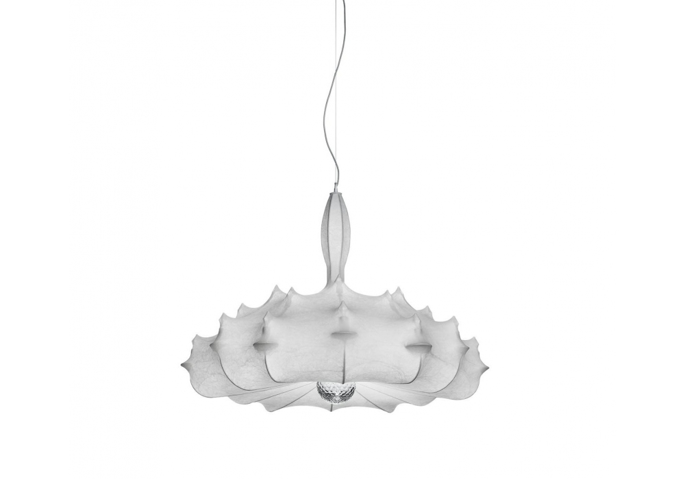 Zeppelin 1 firmata da Marcel Wanders per Flos è una a sospensione con struttura interna in acciaio verniciato a polvere di colore bianco. Il diffusore Il diffusore è ricoperto di resina cocoon protetta da trasparente e scherma una sorgente luminosa di tipo LED. Posta nella parte centrale una sfera in cristallo sfaccettato che impreziosisce la lampada.