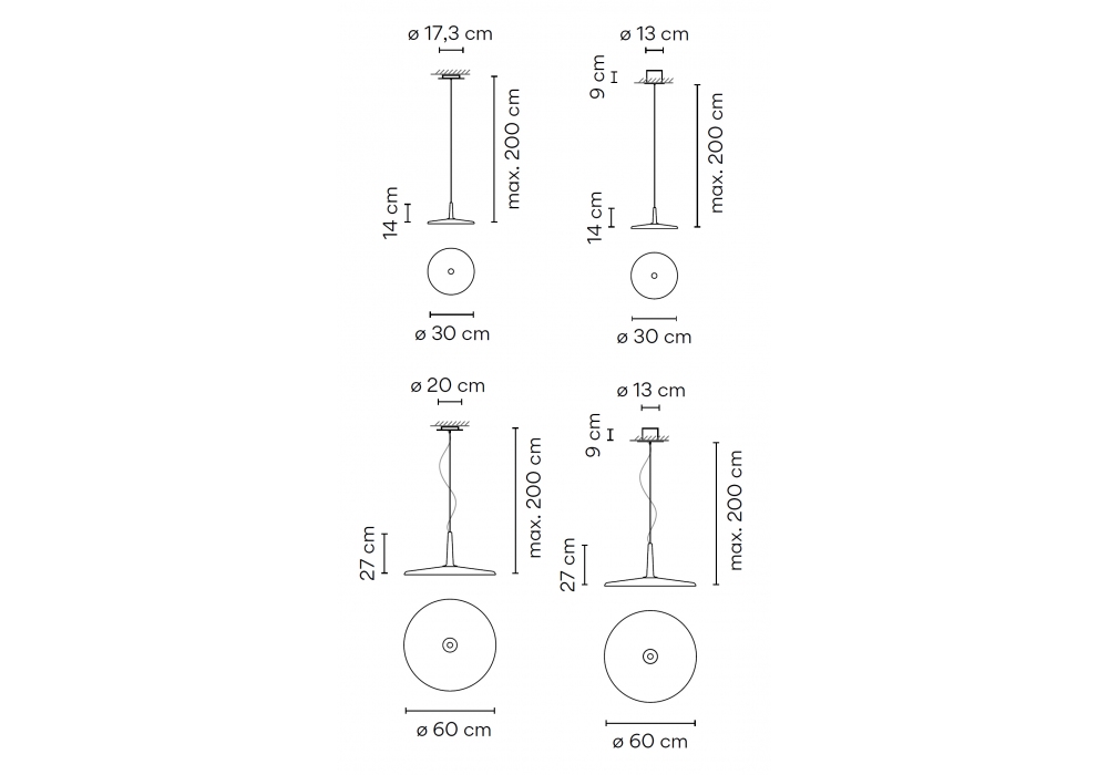 | Rosone | Ø 17,3 cm; Ø 13 cm; Ø 20cm; Ø 13 cm. |