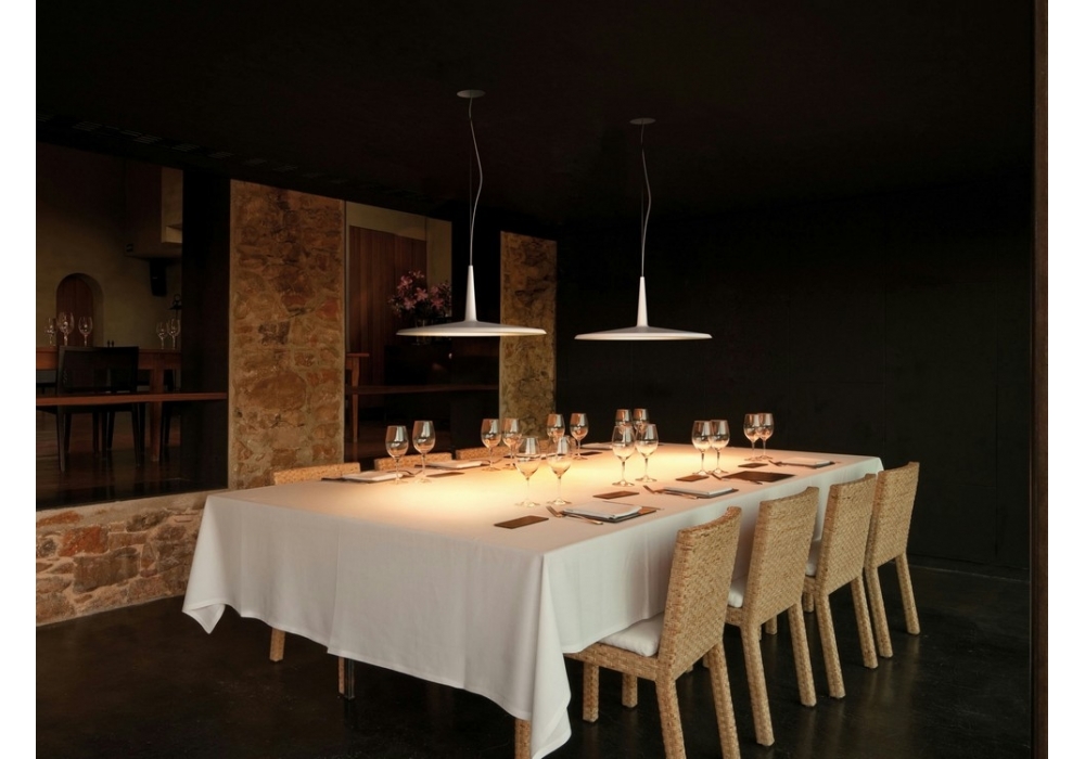 Skan firmata da Lievore, Altherr, Molina per Vibia è una lampada a sospensione di forma circolare con rosone in acciaio e corpo in alluminio verniciato. Il diffusore è in metacrilato e scherma una sorgente luminosa di tipo LED dimmerabile. Skan è disponibile in differenti modelli, gradazioni di sorgente luminosa e dimmerabilità.
