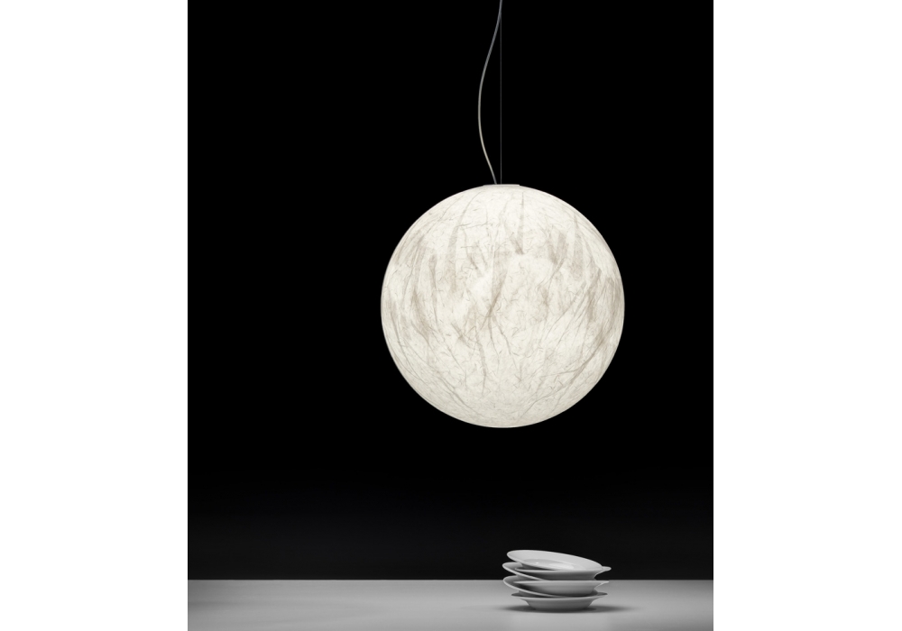 Moon firmata e prodotta da Davide Groppi è una lampada a sospensione di forma sferica con paralume in carta giapponese e cavo di sospensione in acciaio inox. La sorgente luminosa adottata è con innesto E27 di tipo LED. Moon è disponibile in differenti dimensioni.