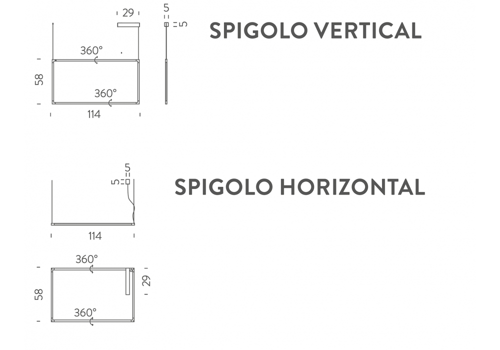 | Dimensioni | 114 x 5 x H 58 cm (Vertical); 114 x 58 x H 5 cm (Horizontal). |