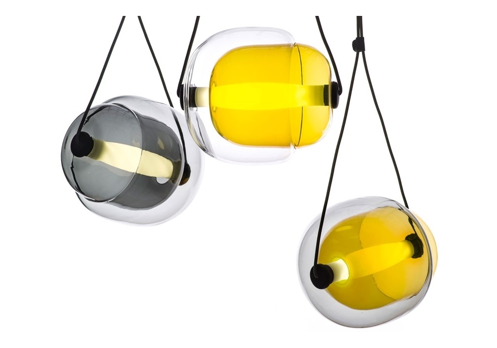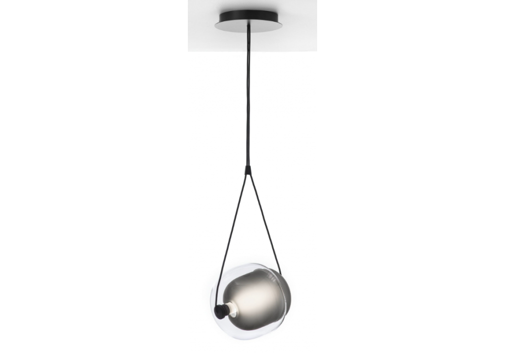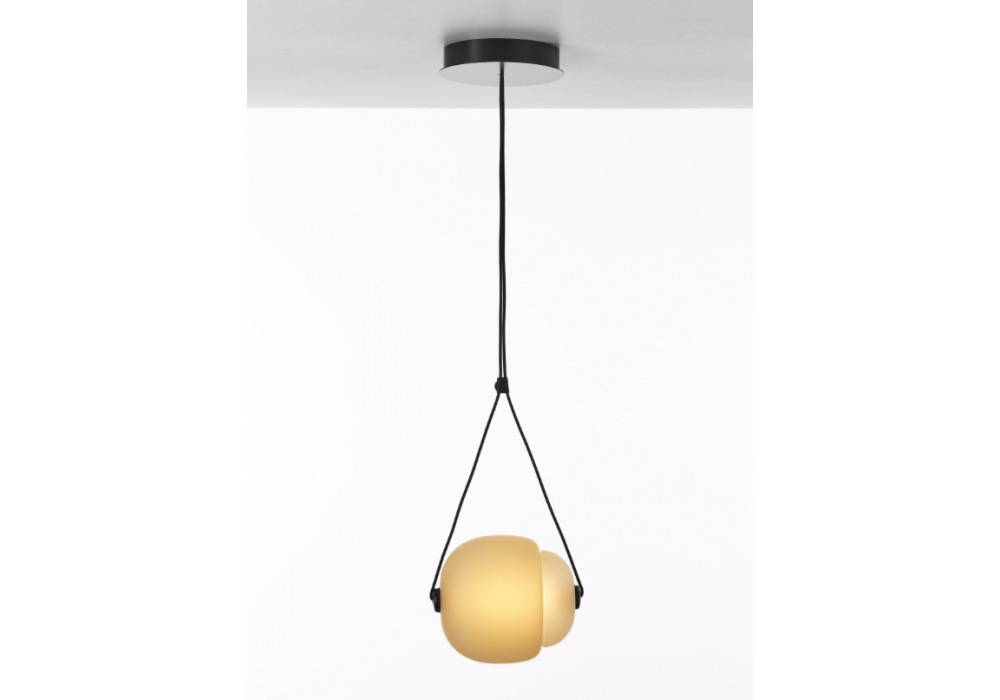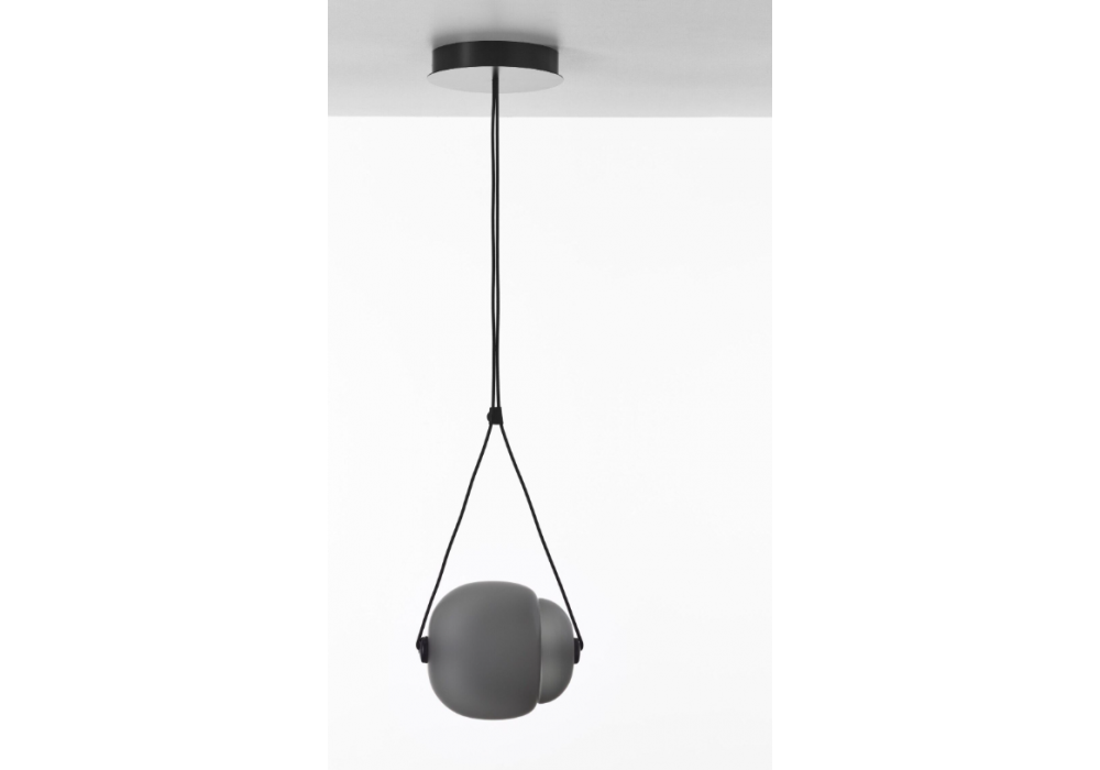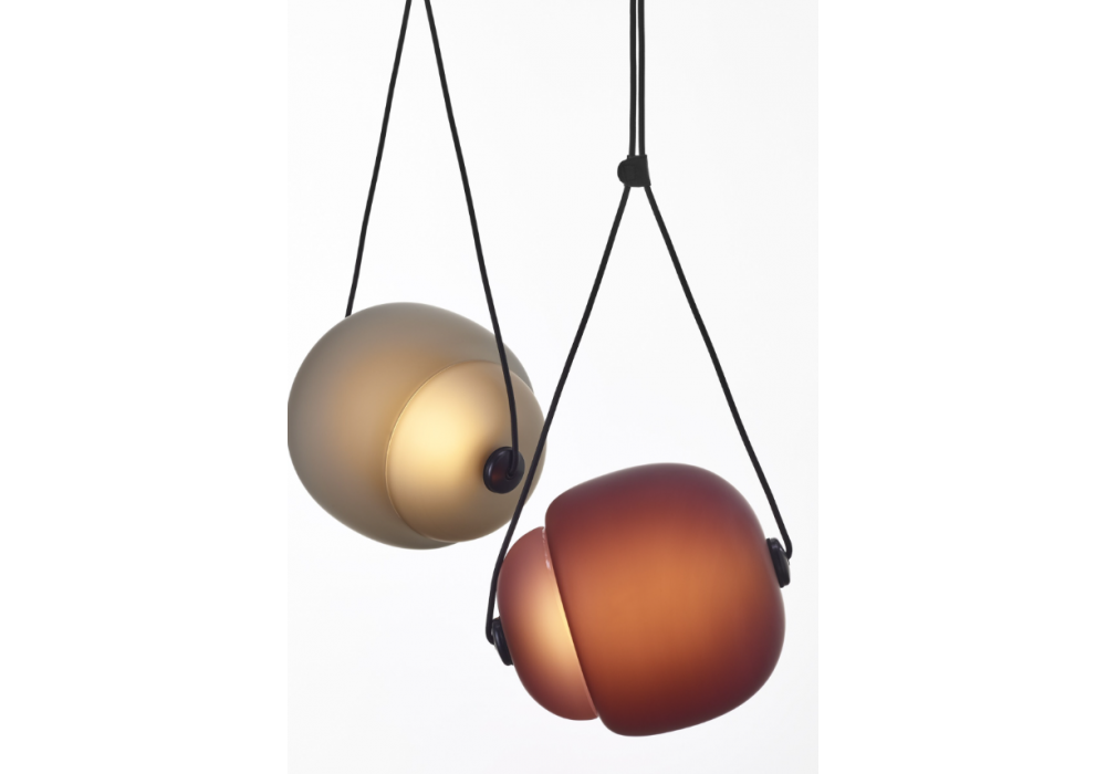 Capsula firmata da Lucie Koldova per Brokis è una lampada a sopsensione con una struttura formata da due capsule ovali in vetro soffiato in svariate finiture, che si intersecano l'una all'altra. Il corpo lampada è disponibile in due cromie nero anodizzato o argento anodizzato, ed adotta una sorgente luminosa di tipo LED dimmerabile (inlcusa) in svariate versioni. Il cavo di alimentazione è in materiale tessile in tinta al rosone.