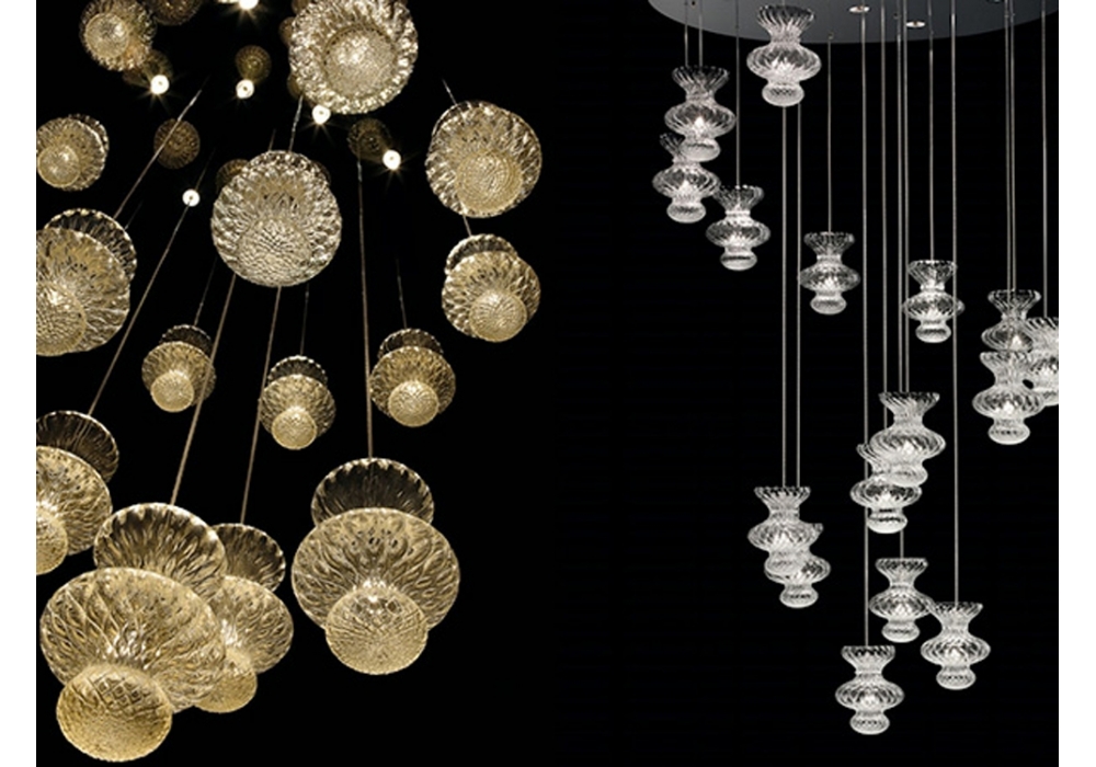 Spinn firmata e prodotta da Barovier & Toso è una lampada da soffitto con struttura portante in metallo color cromo lucido. I pendenti sono in vetro veneziano di forma tondeggiante e superficie lavorata. Le sorgenti luminose adottate sono di tipo LED dimmerabili. Spinn è disponibile in differenti modelli e finiture.