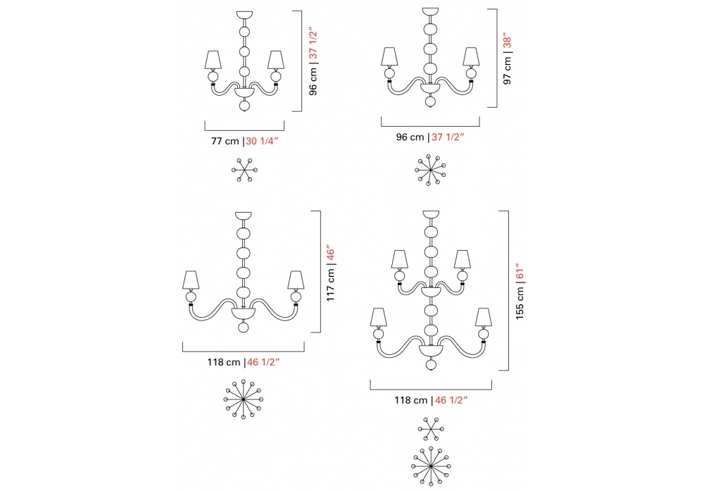 | Dimensioni | Ø 77 x H 96 cm; Ø 96 x H 97 cm; Ø 118 x H 117 cm; Ø 118 x H 155 cm. |
