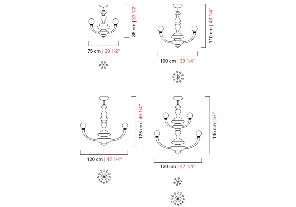 | Dimensioni | Ø 75 x H 85 cm; Ø 100 x H 110 cm; Ø 120 x H 125 cm; Ø 120 x H 145 cm. |