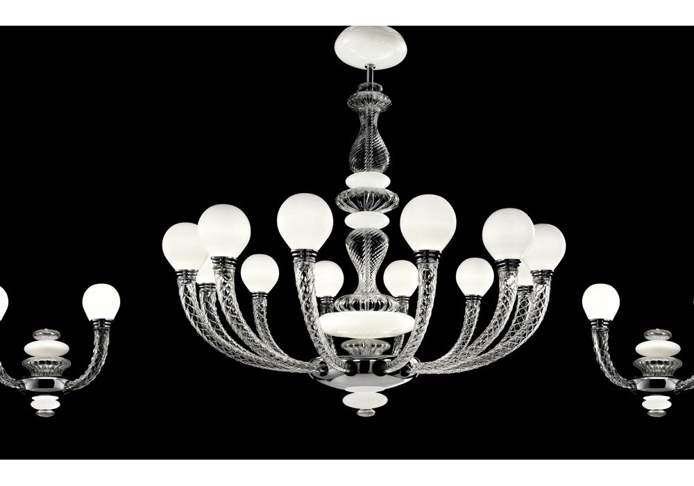 Pigalle prodotto e firmato da Barovier & Toso è un lampadario con struttura portante e particolari in metallo rivestito in vetro veneziano. I diffusori sono di forma sferica in vetro veneziano bianco e schermano delle sorgenti luminose di tipo LED o alogene dimmerabili. Pigalle è disponibile in differenti modelli e finiture.