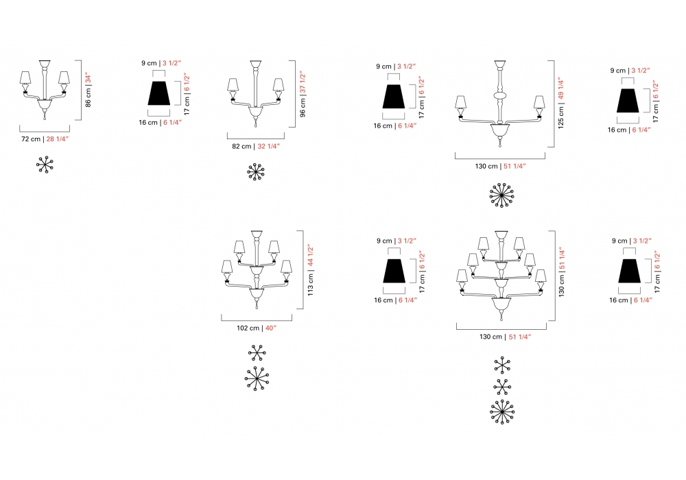 | Dimensioni | Ø 72 x H 86 cm; Ø 82 x H 96 cm; Ø 130 x H 125 cm; Ø 102 x H 113 cm; Ø 130 x H 130 cm. |