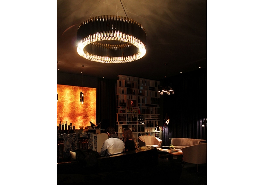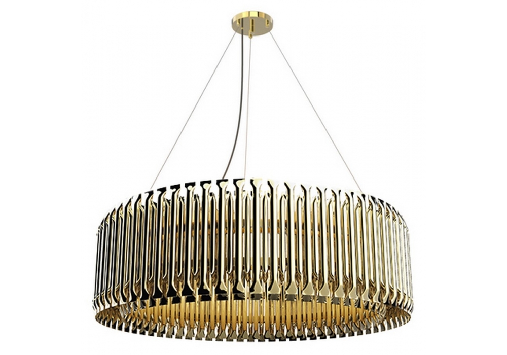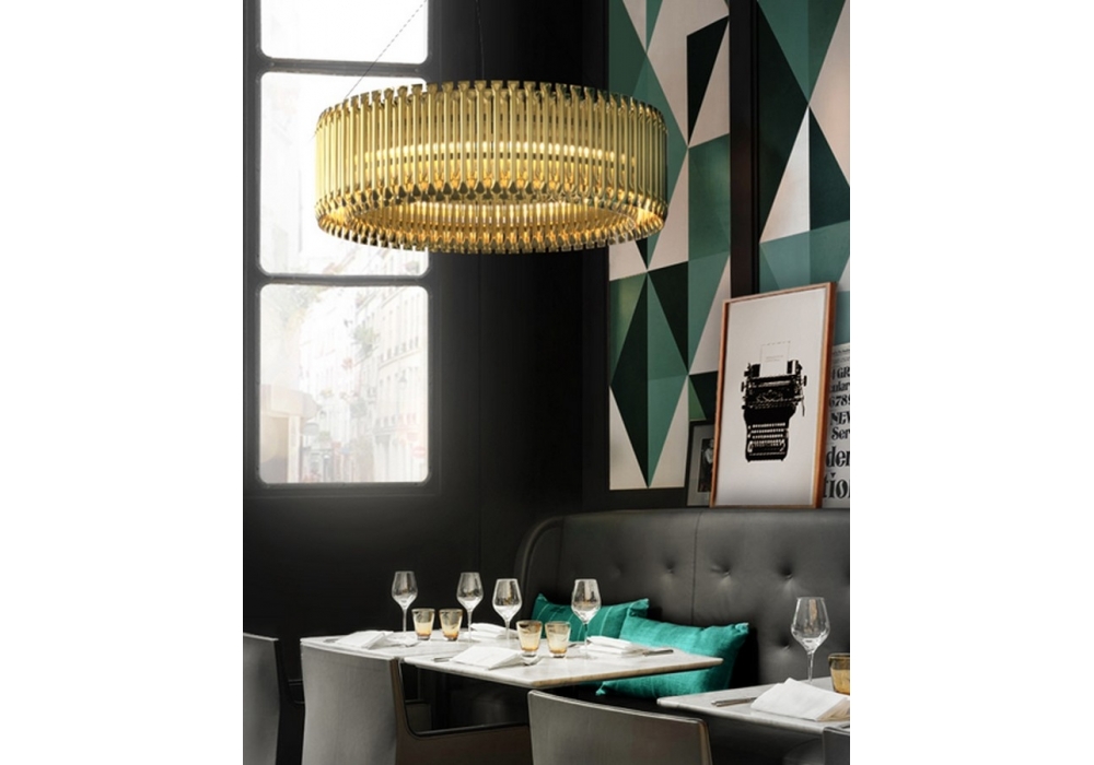 Matheny Round firmata da DelightFULL è un lampada a sospensione ha un design geometrico di tubi combinati e la sua struttura è realizzata a mano in ottone.