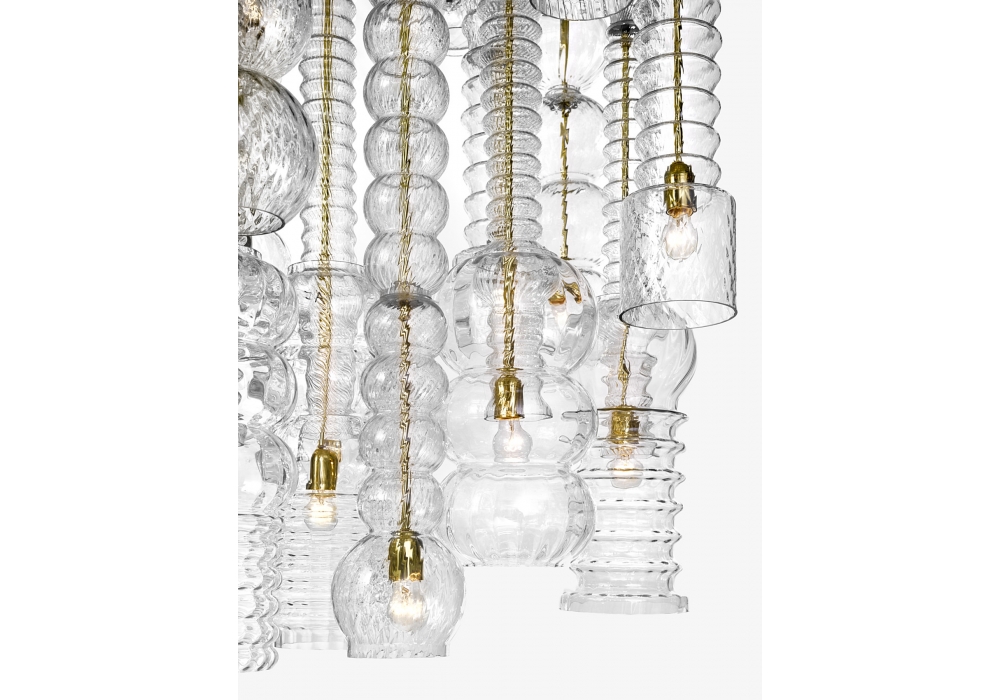 Praha firmato da Stanislav Libenský per Lasvit è un bellissimo lampadario realizzato in vetro soffiato a mano e metallo. La luce naturale crea immagine negativa / positiva direttamente sul vetro. La varietà di forme e altezze consente effetti di luce diversi. Queste caratteristiche distintive, cosi come la variabilità di utilizzo, rendono l'illuminazione Praha scultura un design senza tempo.