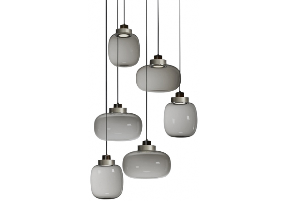 557 Leiger firmato da Corrado Dotti per Tooy è un lampadario a LED con struttura in colore nero sabbia, attacco lampada in rame, ottone spazzolato o verniciato, mentre il diffusore è realizzato in vetro soffiato bianco opalino o fumé. LED incluso.