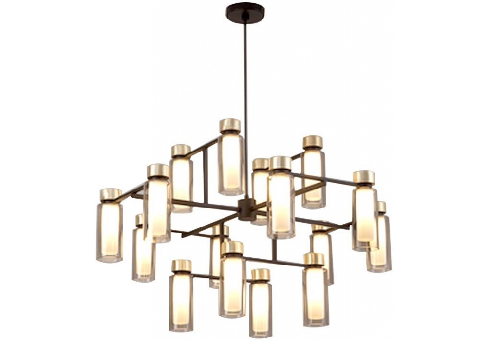 560 Osman firmato da Corrado Dotti per Tooy è un lampadario arricchito da dettagli in ottone spazzolato e diffusori a doppia parete fumé. Lampadina non inclusa.