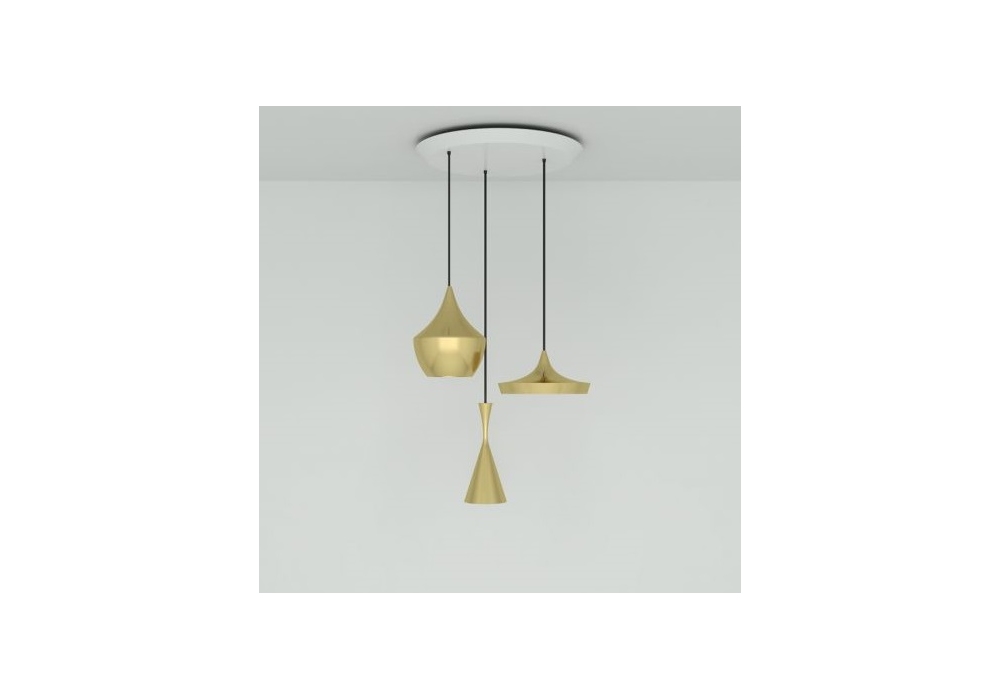 Beat Trio firmato da Tom Dixon è un lampadario in ottone composto da tre plafoniere, interno colore oro. Lampadario disponibile in diverse finiture.