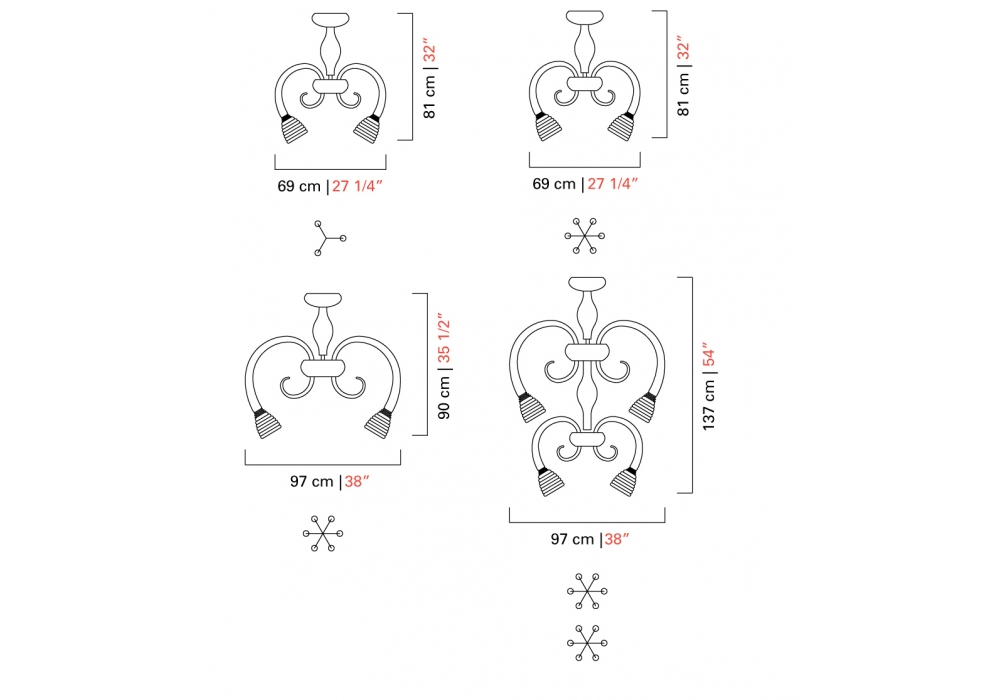 | Dimensioni | Ø 69 x H 81 cm; Ø 69 x H 81 cm; Ø 97 x H 90cm; Ø 97 x H 137 cm. |