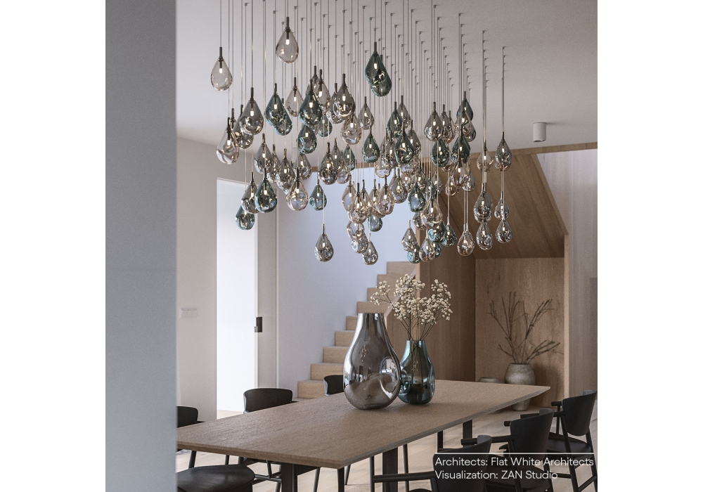 Soap Mini firmato da Ota Svoboda per Bomma è un lampadario composto da diffusori in cristallo soffiato a bocca. È disponibile in diverse configurazioni e finiture.