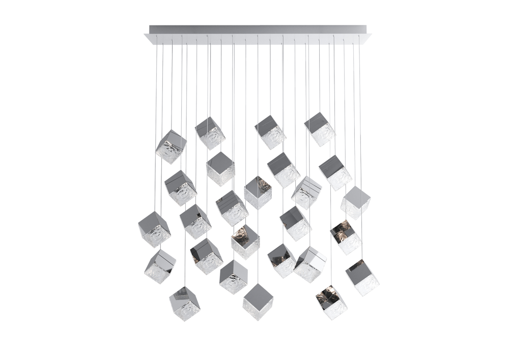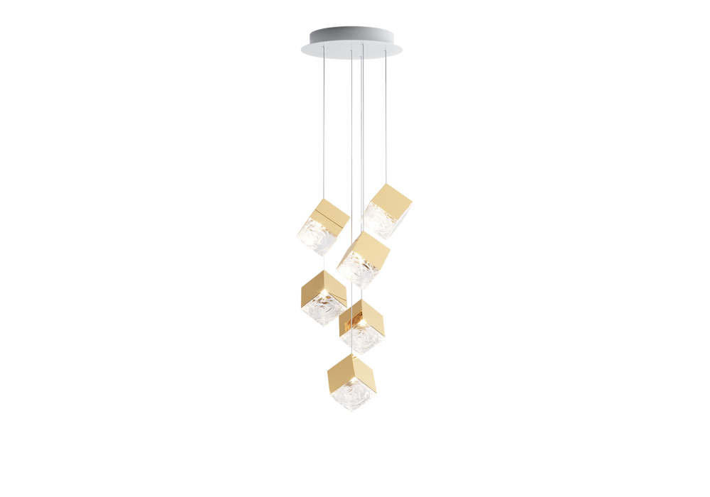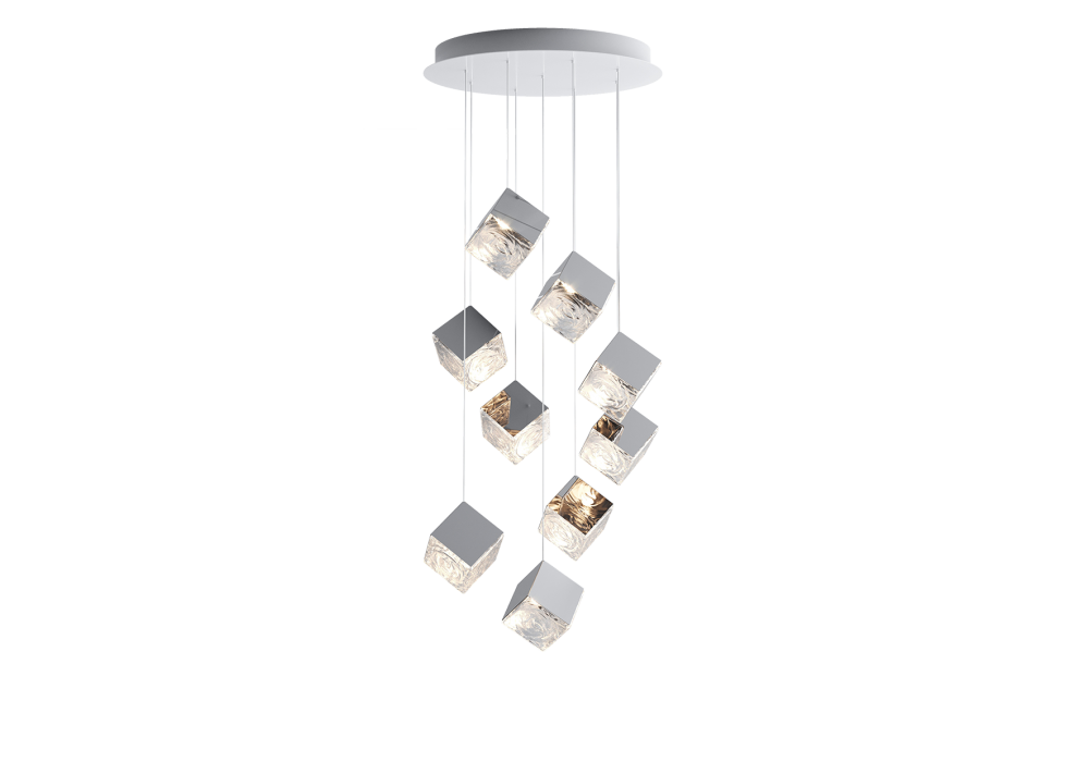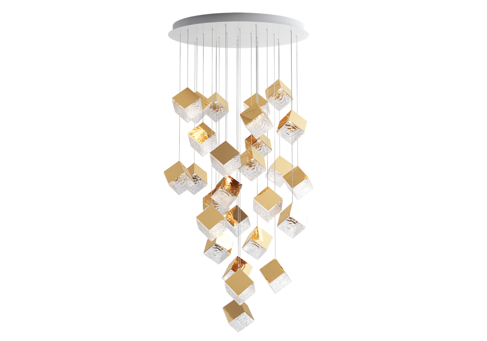 Pyrite firmato da Studio Dechem per Bomma è un lampadario realizzato a mano con diffusori in cristallo soffiato a bocca. È disponibile in diverse finiture e configurazioni.