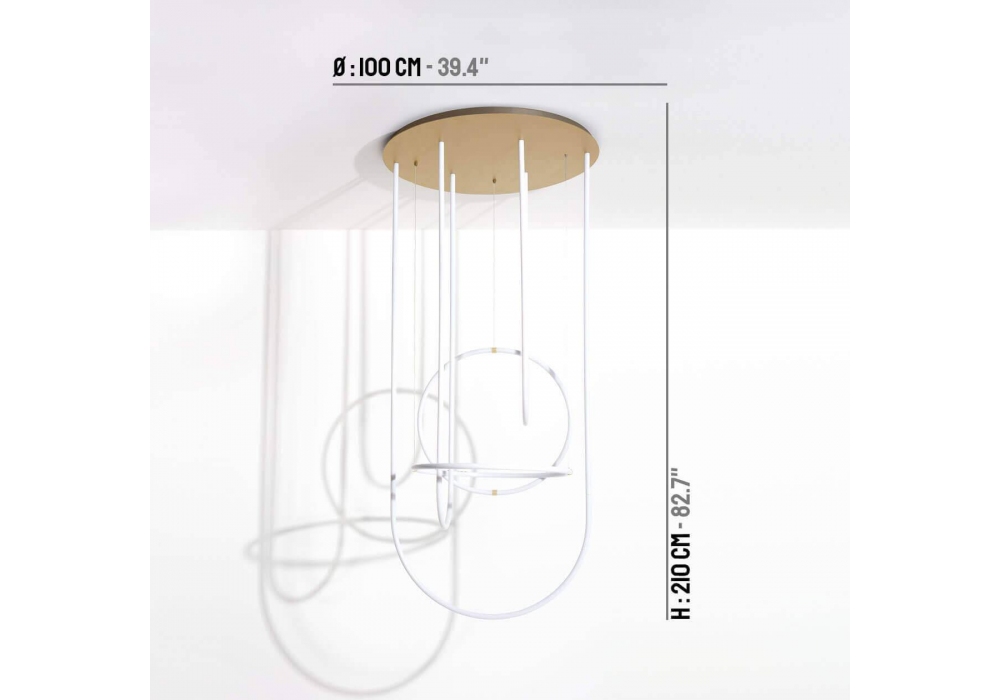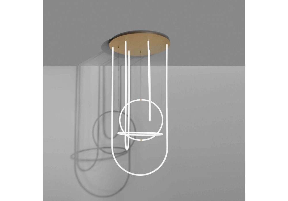 Unseen firmato da Studiopepe per Petite Friture è un lampadario a LED realizzato con silicone, policarbonato, ottone e acciaio verniciato.