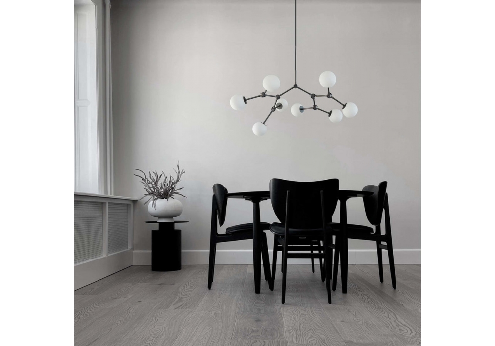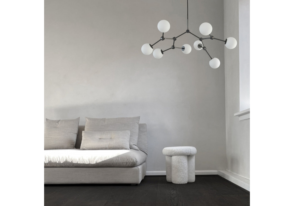 Drop Bulp Mini firmato da Kristian Sofus Hansen & Tommy Hyldahl per 101 Copenhagen è un lampadario realizzato in metallo nella finitura grigio e paralumi in vetro opalino.