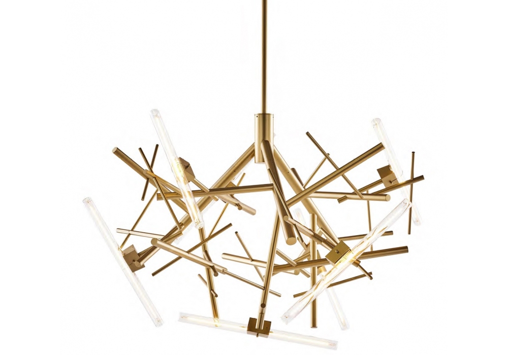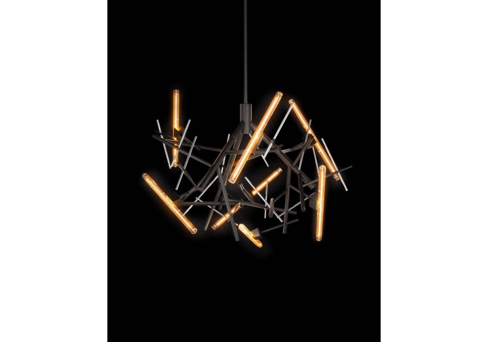 Linea Round firmato da William Brand per Brand Van Egmond è un lampadario realizzato con struttura in metallo e diffusori in vetro.