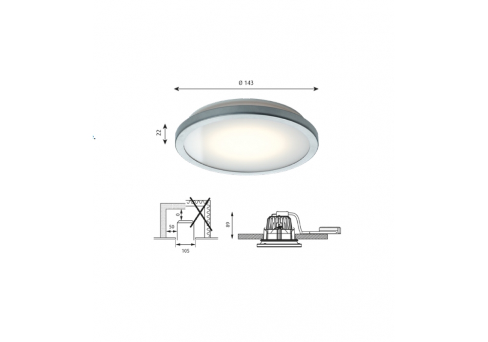 Munkegaard Mini firmata da Arne Jacobsen per Louis Poulsen è una lampada ad incasso di forma circolare con struttura in metallo nella finitura cromo satinato placcato. La sorgente luminosa adottata è di tipo LED dimmerabile Dali.