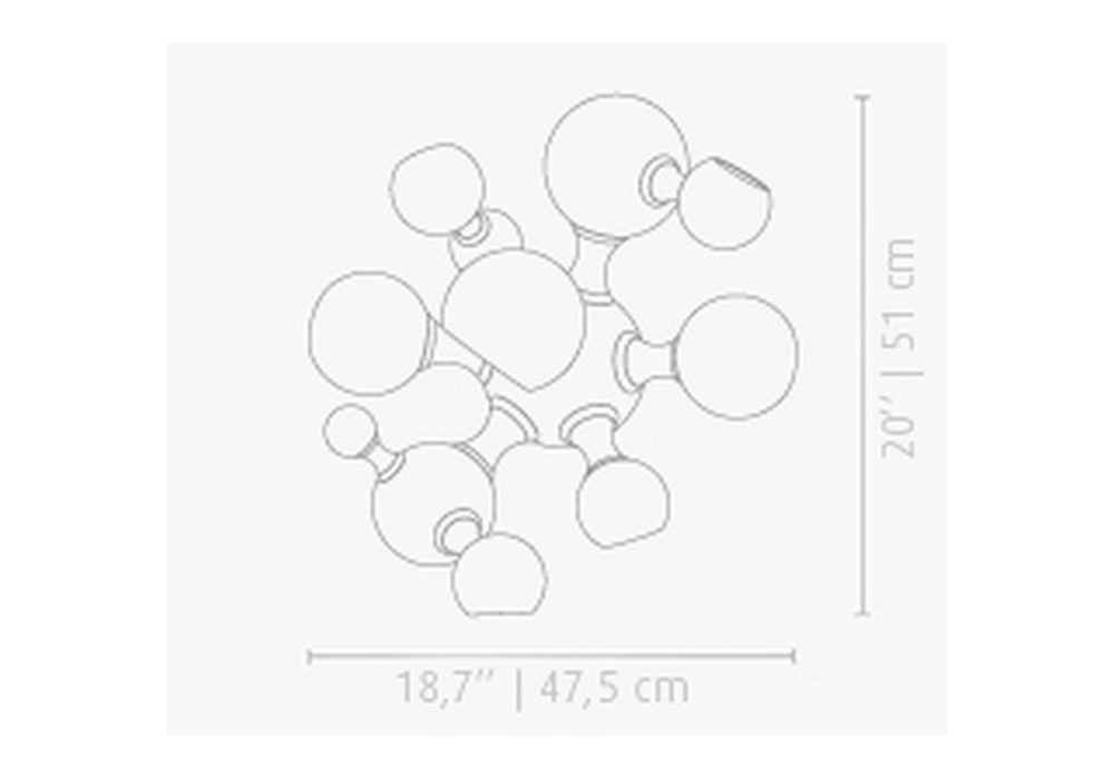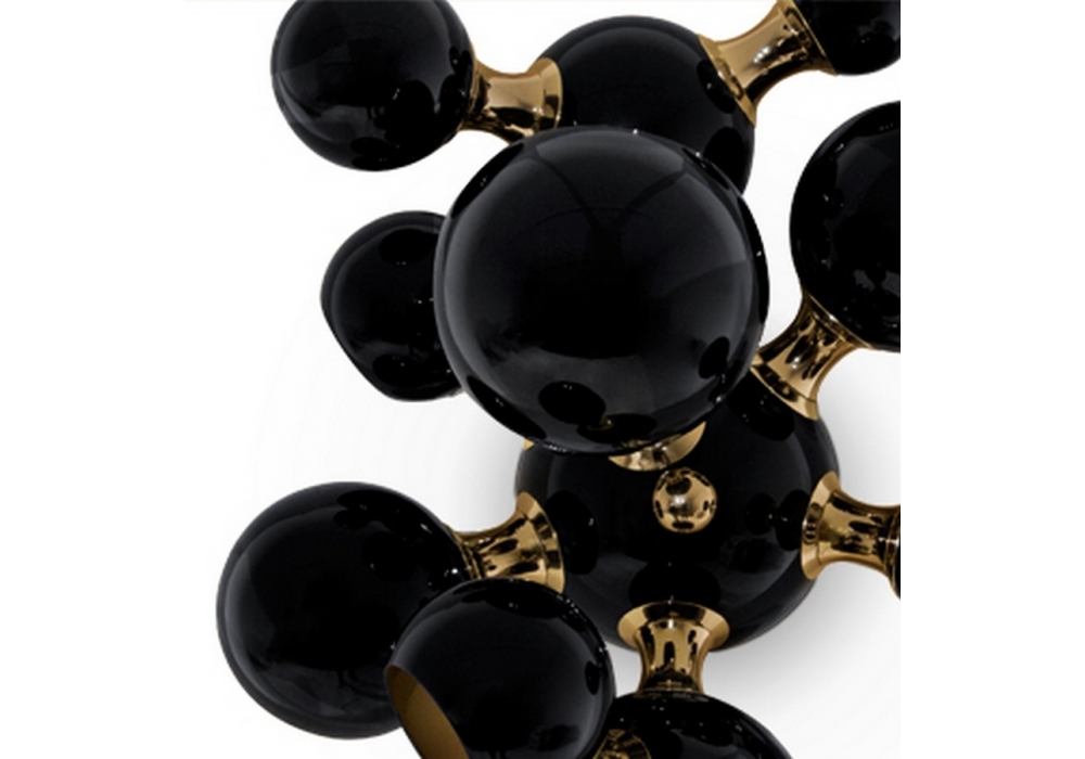 Atomic firmata da DelightFULL è una lampada da parete, il corpo è realizzato a mano in ottone e acciaio, con finitura nera lucida e placcata oro. I paralumi sono caratterizzati da una laccatura nera lucida all'esterno, mentre per l'interno del paralume viene utilizzata una vernice a polvere dorata.